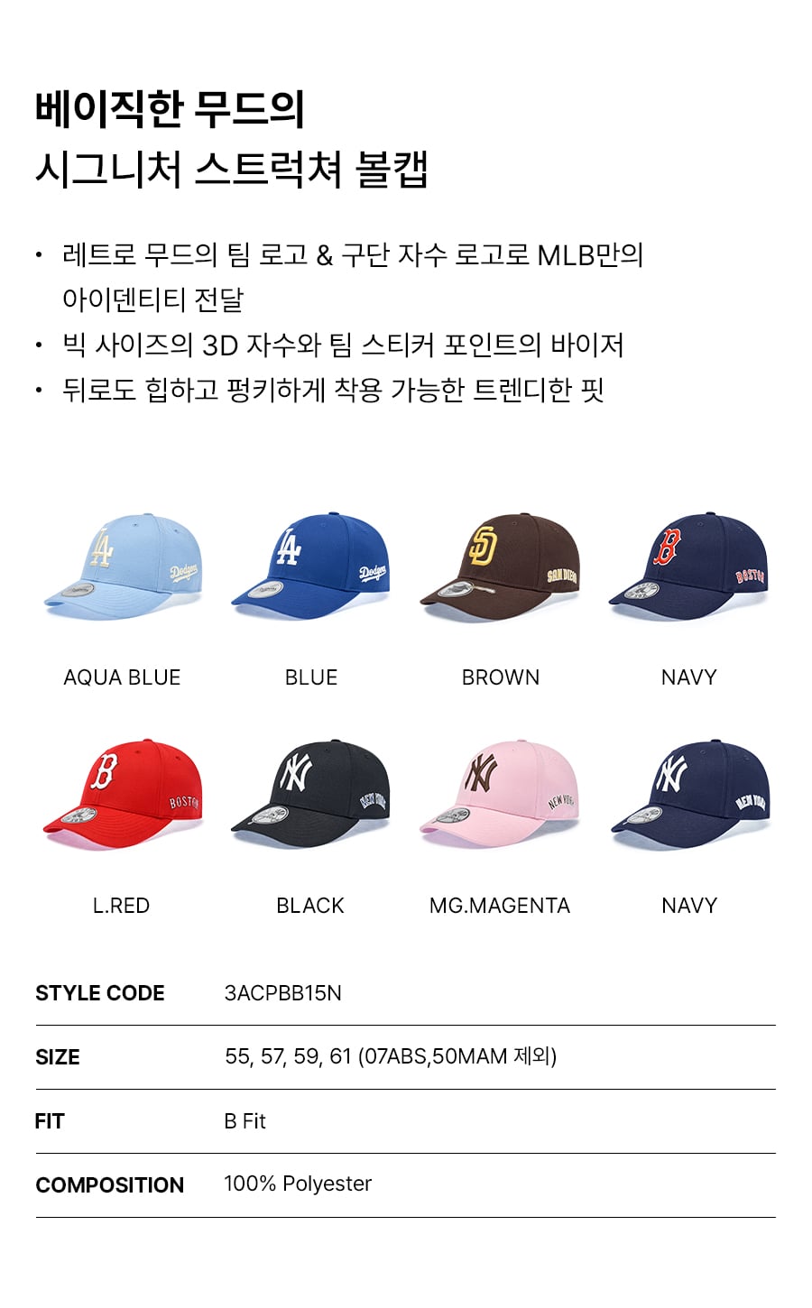 MLB(엠엘비)는 148년 전통의 American Sports Lifestyle을 상징하는Major League Baseball의 클래식 헤리티지를 현대적으로 재해석하여 Technical Street Casual을 지향하고 있으며, Active한 라이프 스타일을 즐기는 Young Generation의 패션 아이콘으로 다양한 스타일에 믹스 앤 매치가 가능한 스타일링 아이템들이 오랫동안 사랑 받고있는 브랜드입니다.