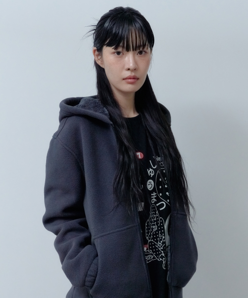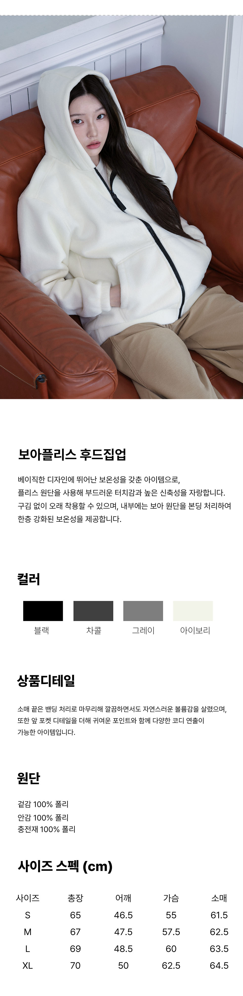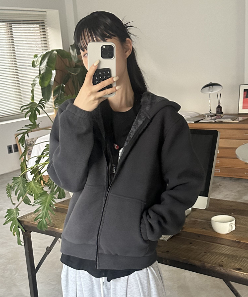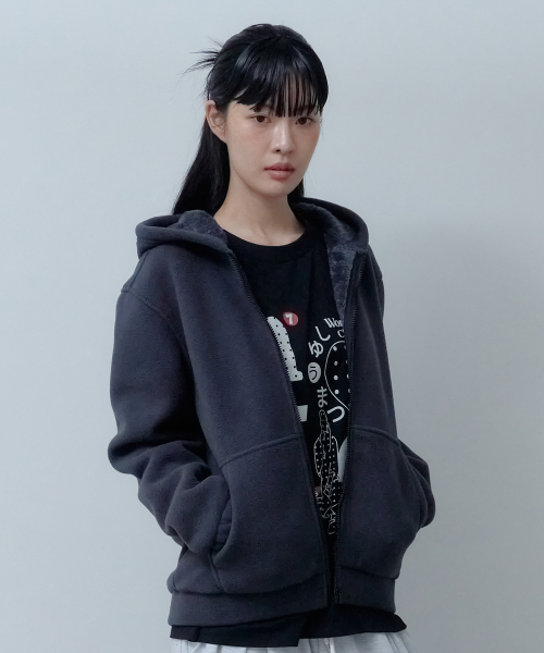 보아 본딩 클라우드 베이직 플리스 후드 집업 (차콜)