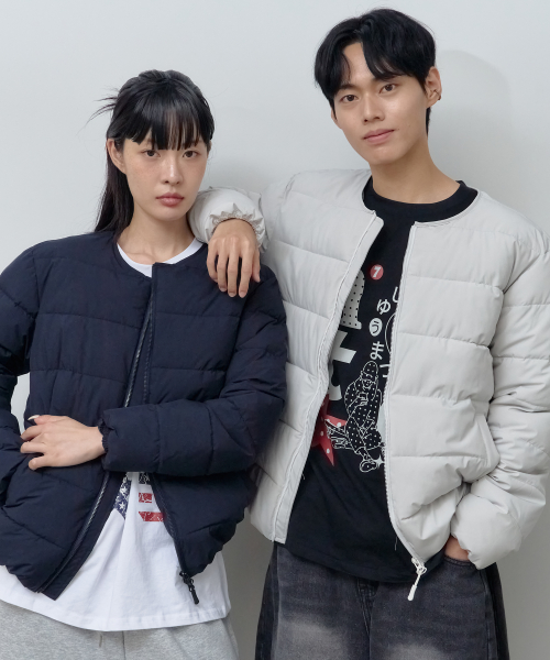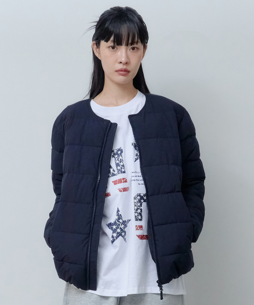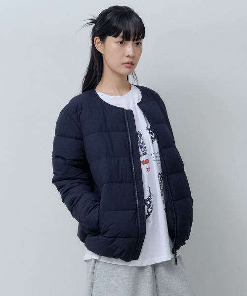 2Way 라운드 경량 패딩 점퍼 (네이비)