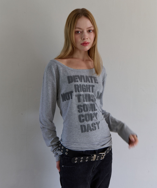 오프숄더 레터링 그래픽 후드 긴팔 티셔츠 GREY