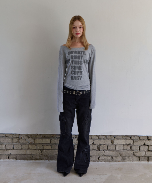 블러 레터링 루즈핏 롱슬리브 (멜란지 그레이)