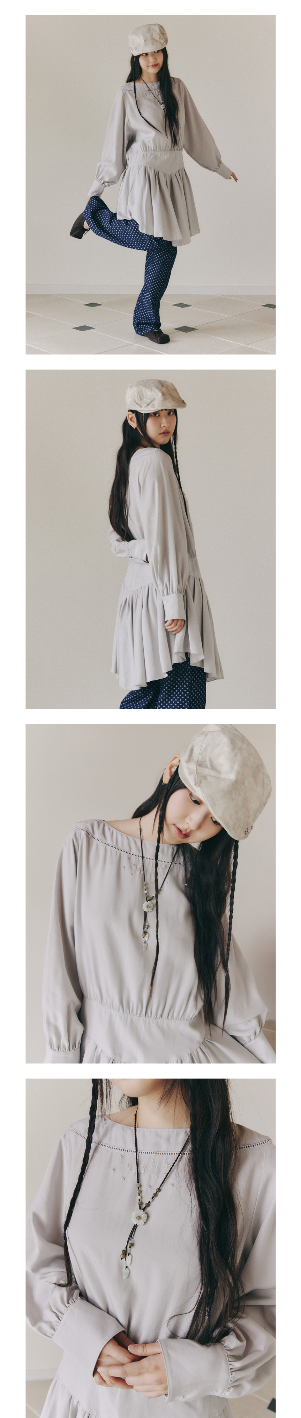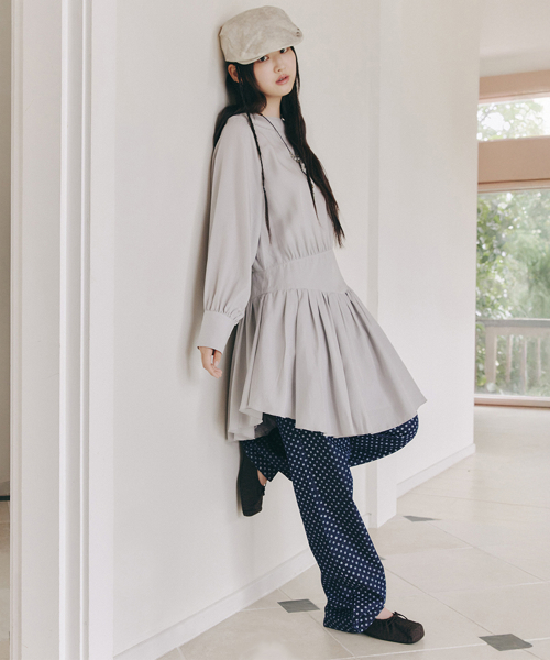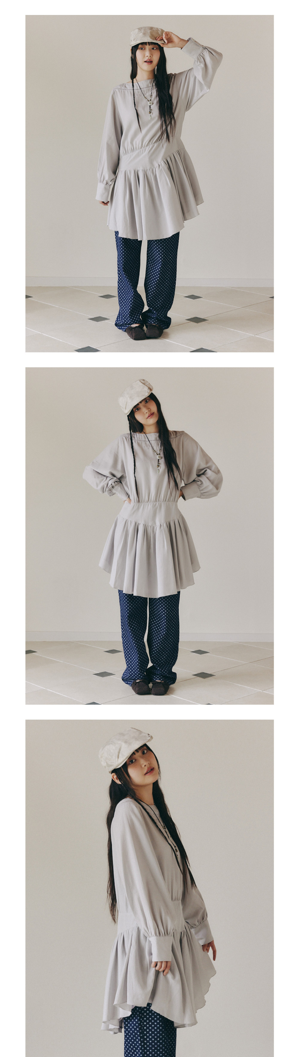 ASYMMETRIC GATHERED DRESS_LIGHT GREY