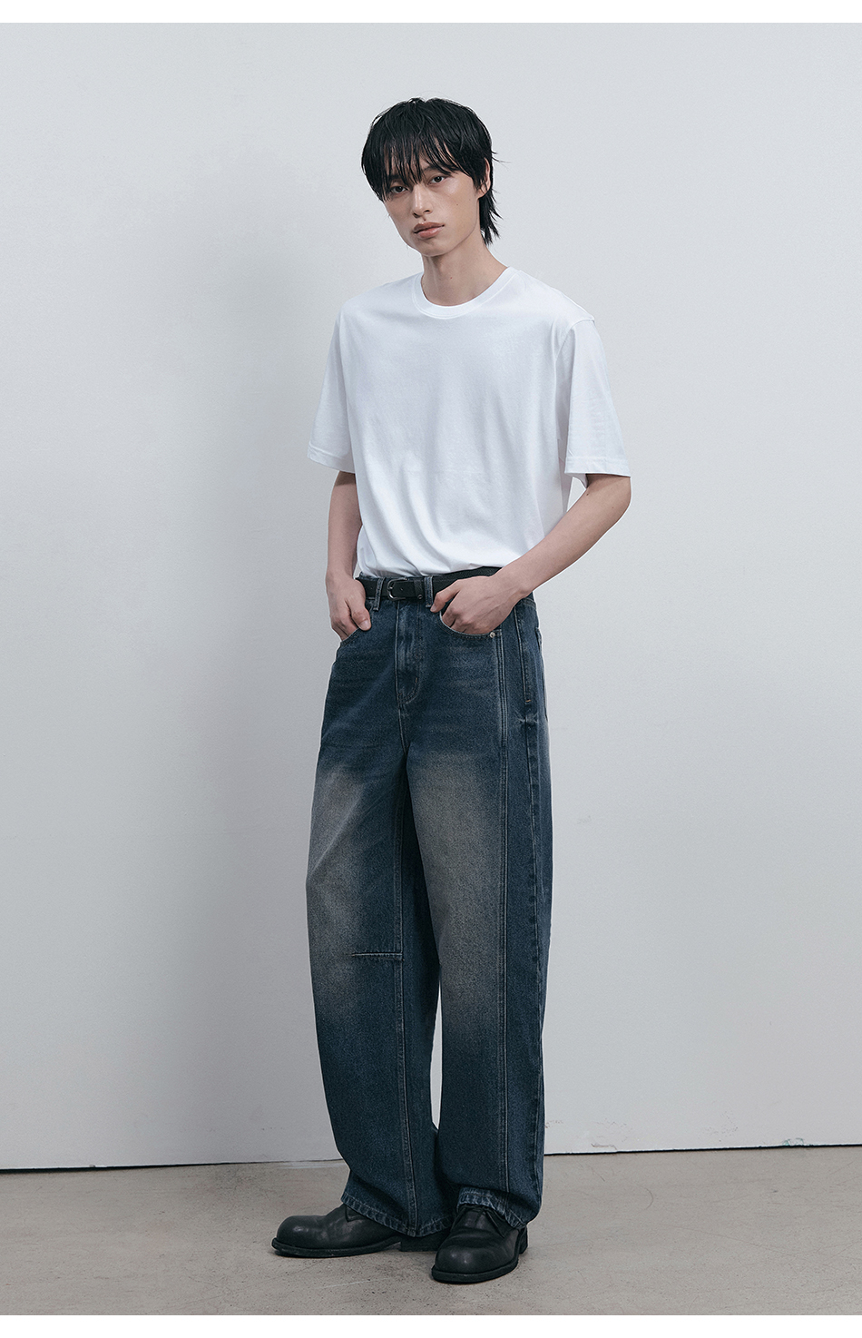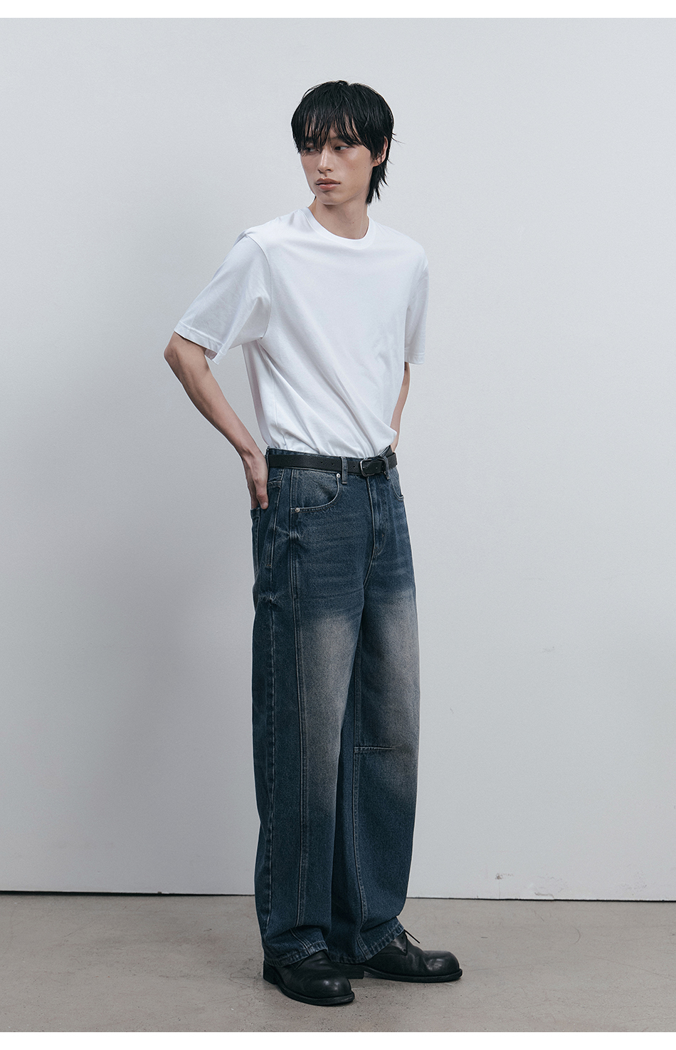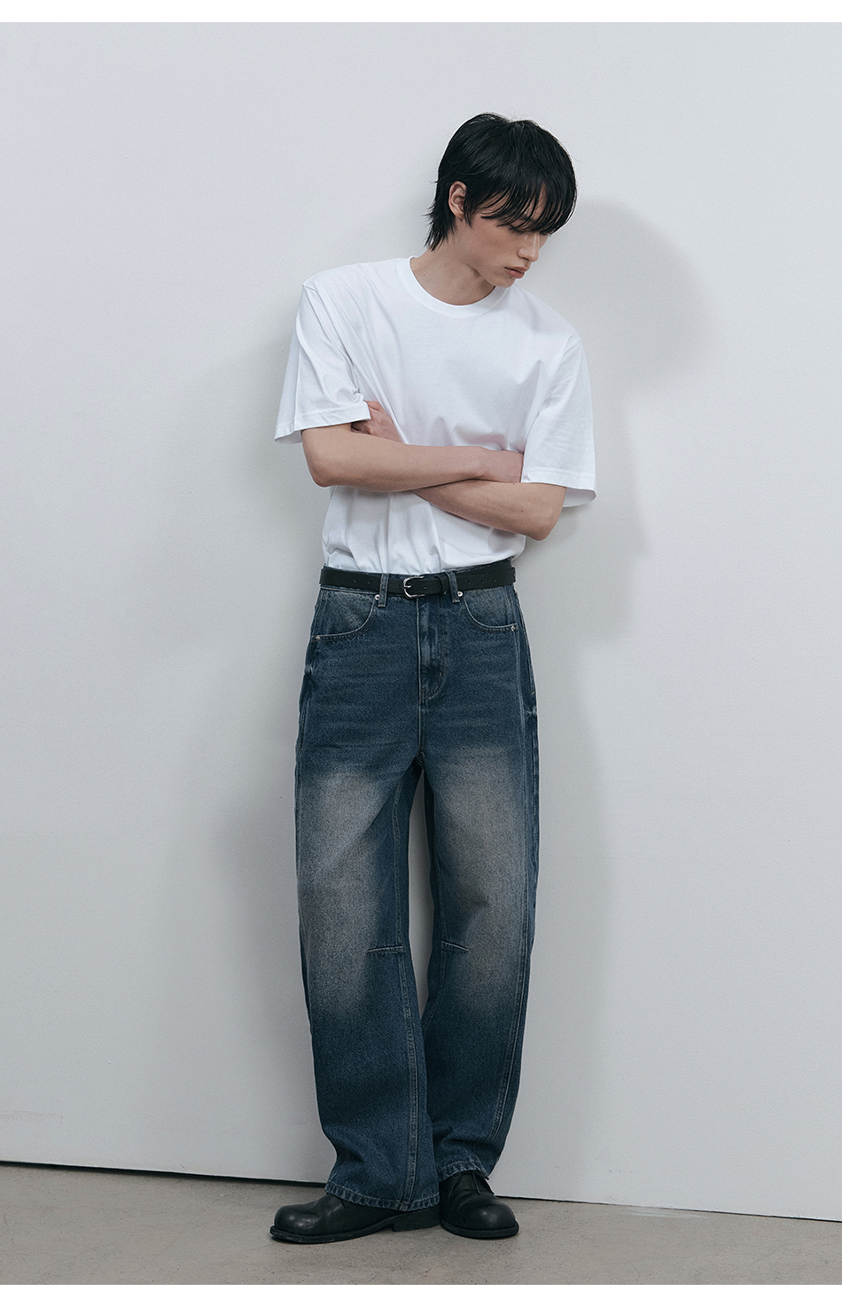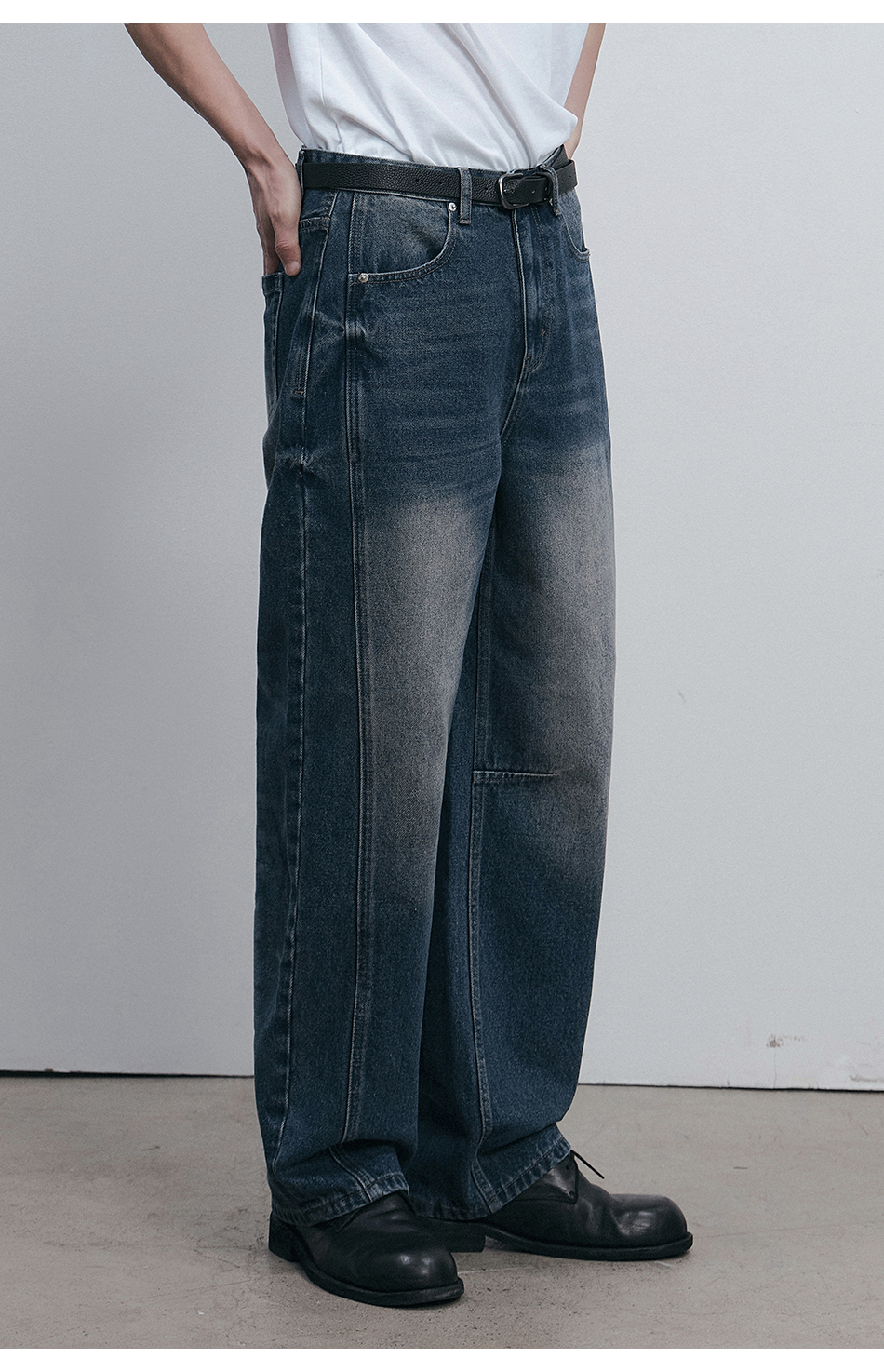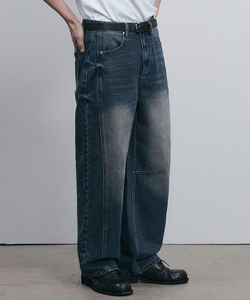 드로우 커브드 데님팬츠 (생지)