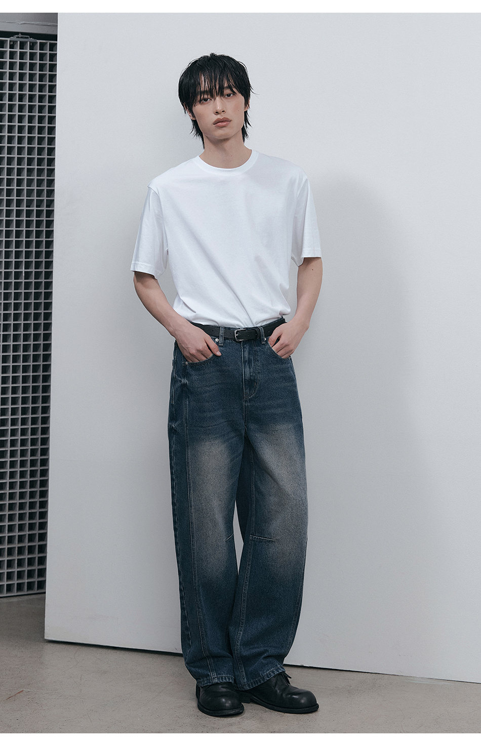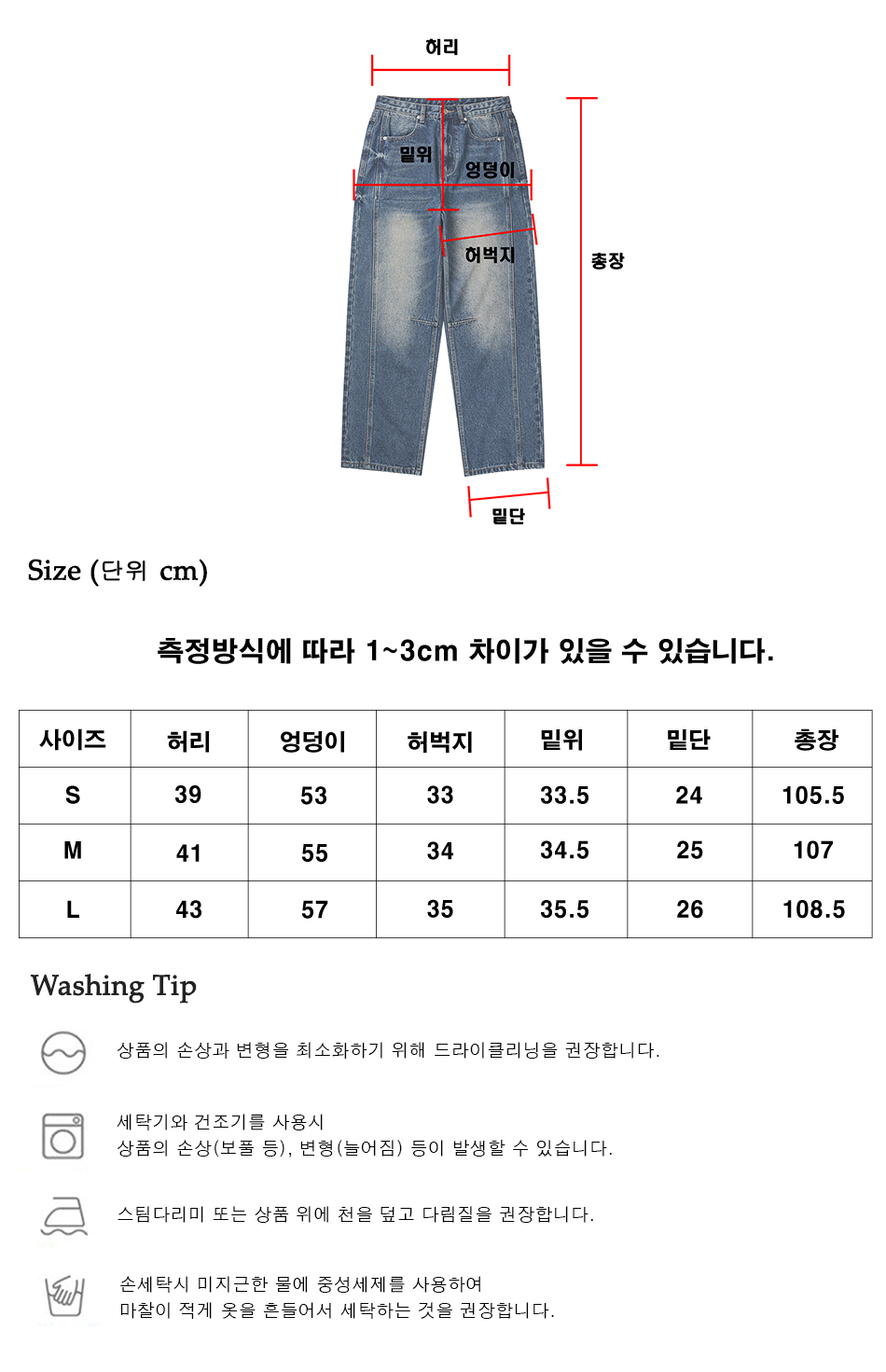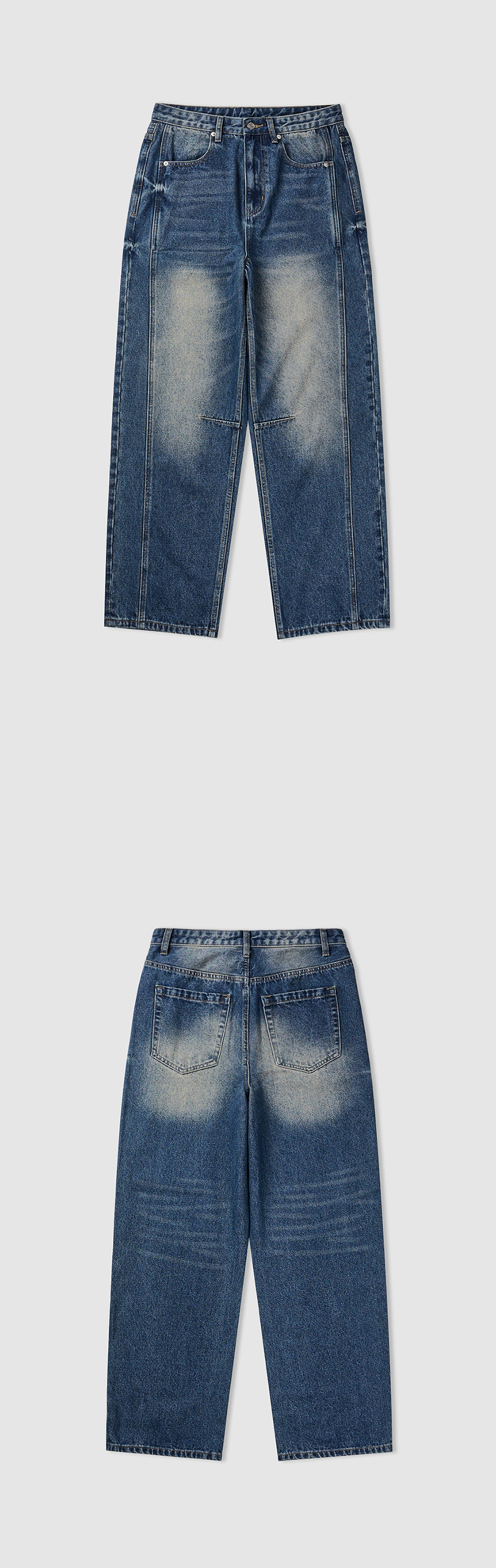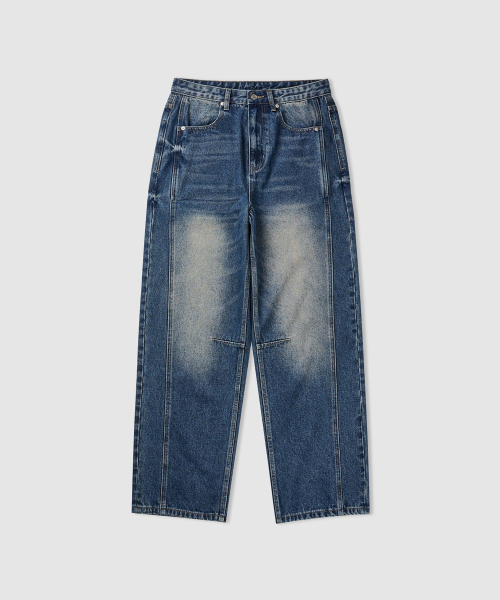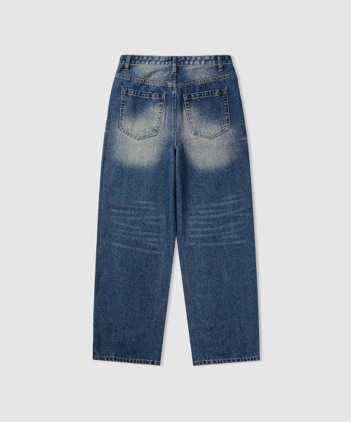 와이드 워싱 데님 팬츠 [미디엄 블루]
