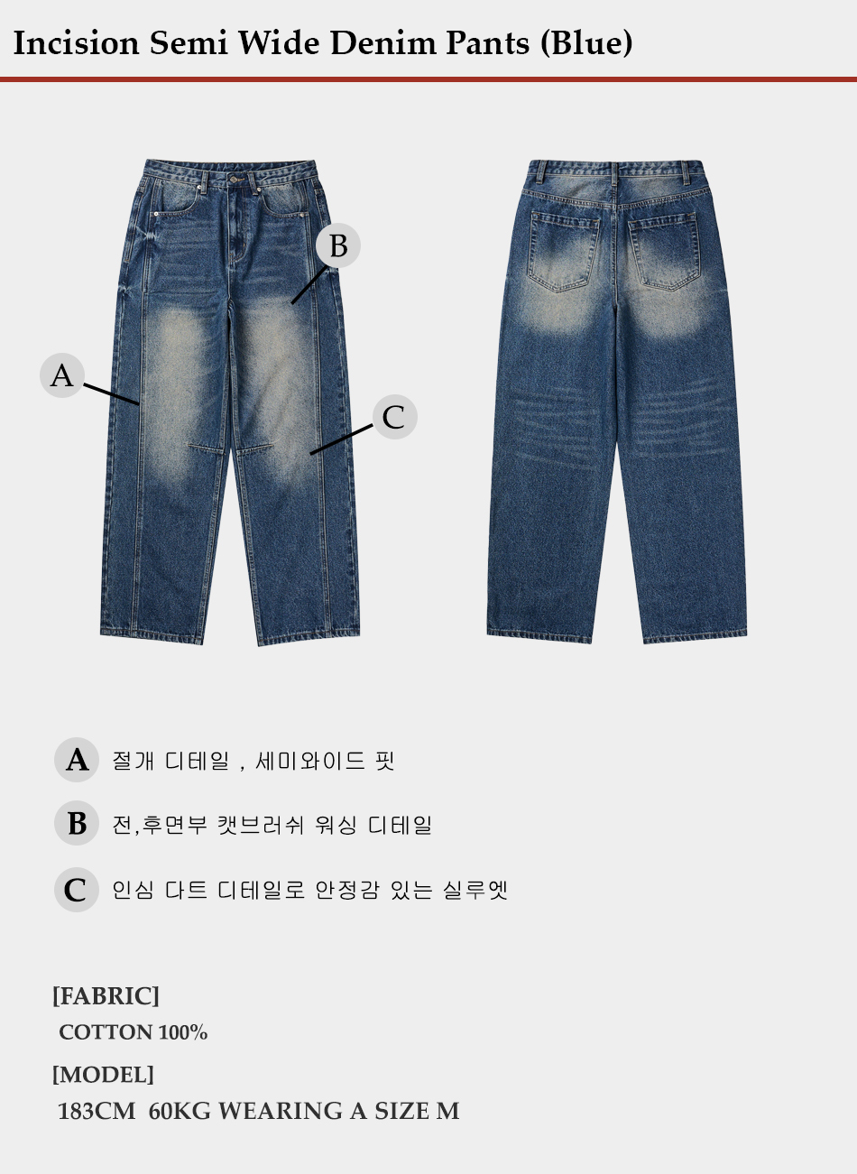 인시션 세미 와이드 데님팬츠 (블루)