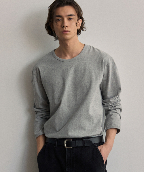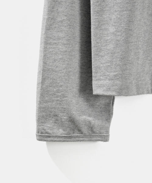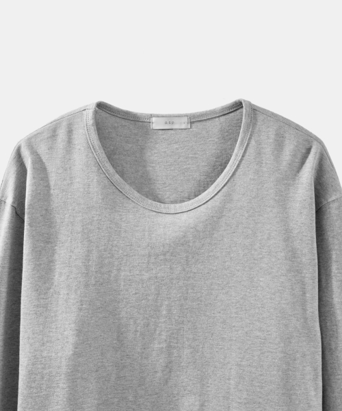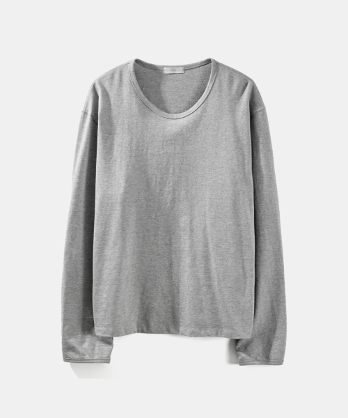 U넥 긴팔 티셔츠 - 멜란지 그레이