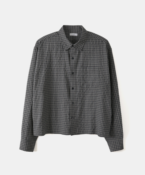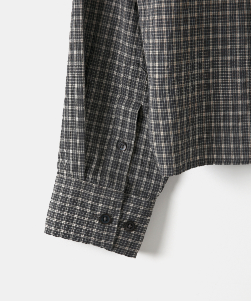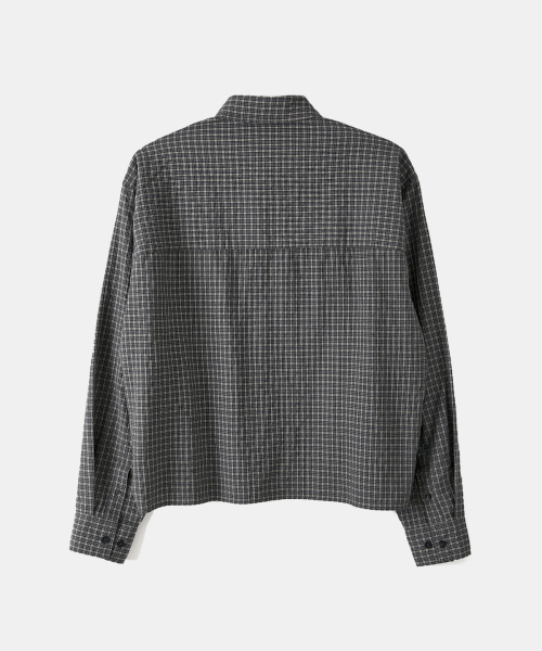 빈티지 크롭 스트라이프 셔츠 - 그레이