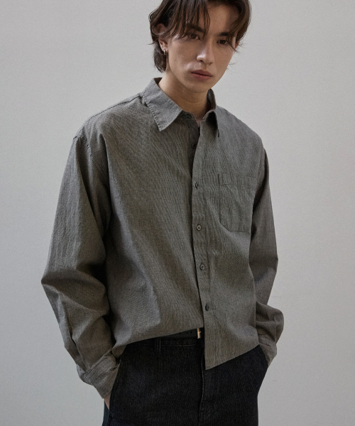 빈티지 크롭 스트라이프 셔츠 - 그레이