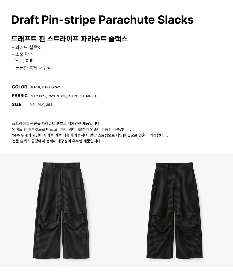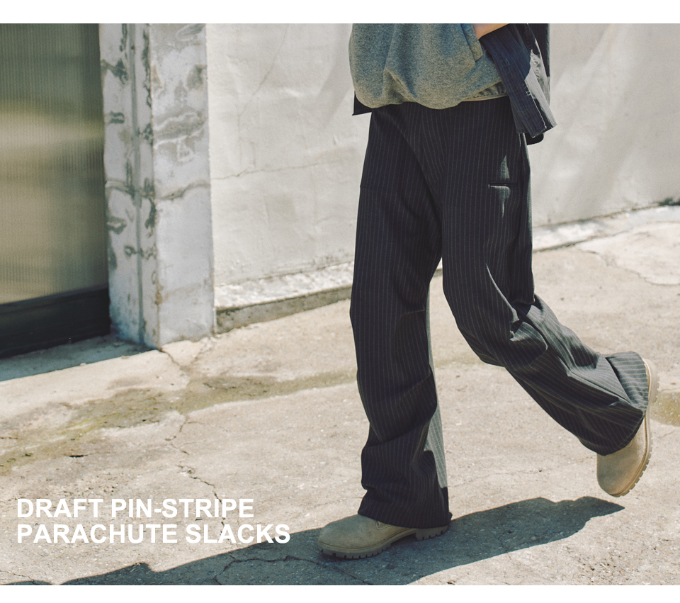 드래프트 핀스트라이프 파라슈트 슬랙스 다크그레이