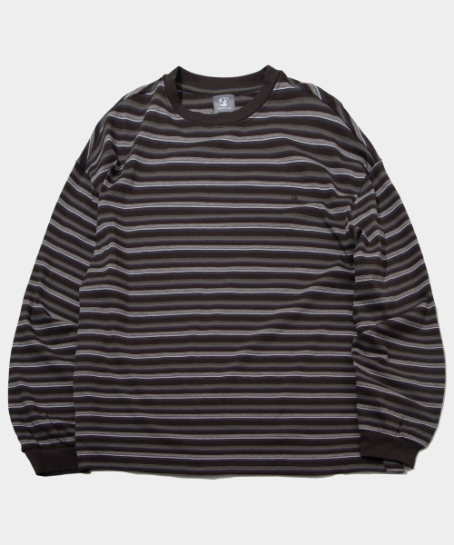 멀티 스트라이프 래글런 단가라 레이어링 롱슬리브 [브라운]