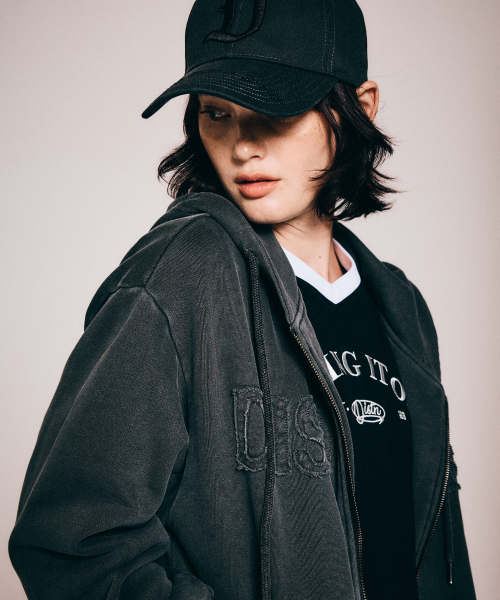 피그먼트 자수로고 후드집업 LP3TF617_DARK GREY