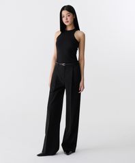 [쿨탠다드] 우먼즈 로 웨이스트 딥 턱 와이드 히든 밴딩 슬랙스 [블랙]