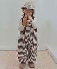 모찌 스트라이프 멜빵바지 브라운 C2AQ8202-BR