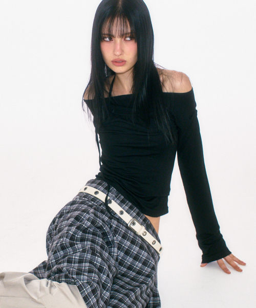 미니멀 메탈 스터드 아일렛 웨스턴 레더 벨트 [아이보리]