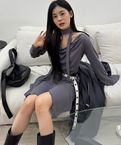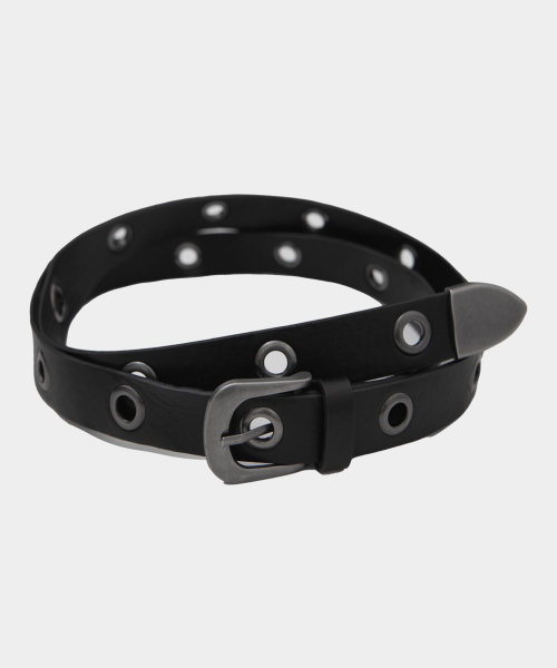 미니멀 메탈 스터드 아일렛 웨스턴 레더 벨트 [블랙]