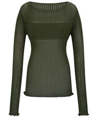 스카시 변형 디테일 보트넥 니트(카키)