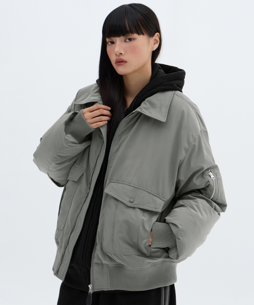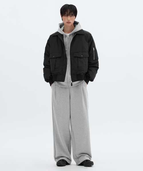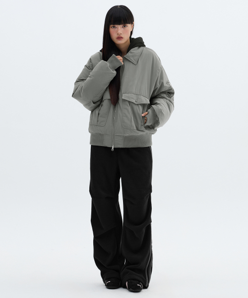 2WAY 하이넥 오버핏 후드 패딩 자켓 [블랙]