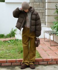 우먼즈 와이드 코듀로이 팬츠 [올리브]