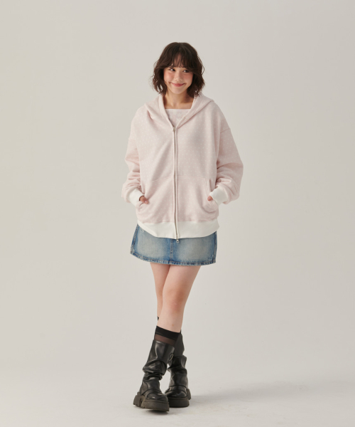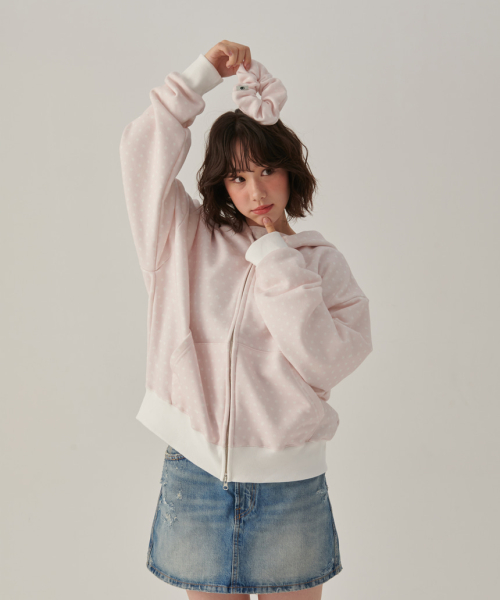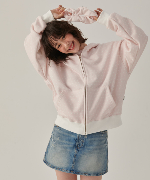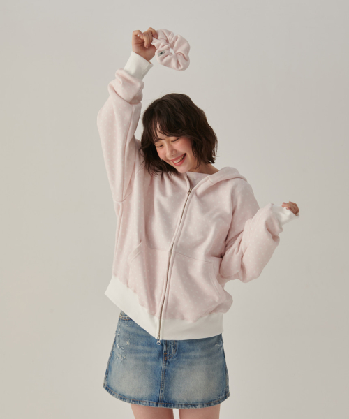 핑크 토끼땡 풀프린트 투웨이 후드집업