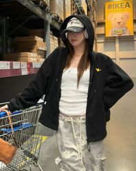 엔젤 플리스 후드 자켓- BLACK