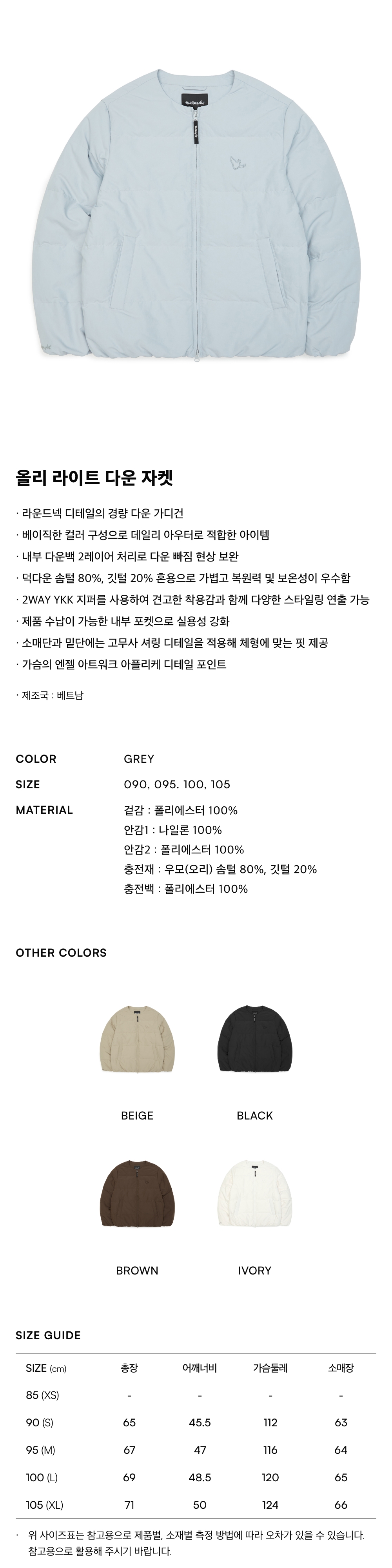 올리 라이트 다운 자켓- IVORY