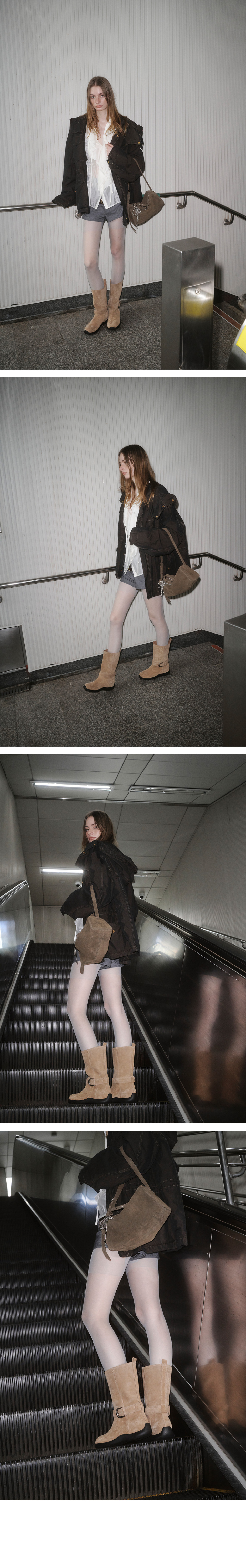 레이븐 폴더블 버클 부츠 그레이