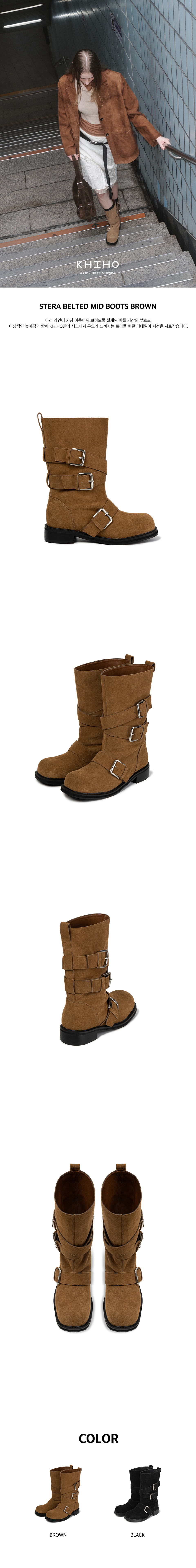 스테라 벨티드 미드 부츠 브라운