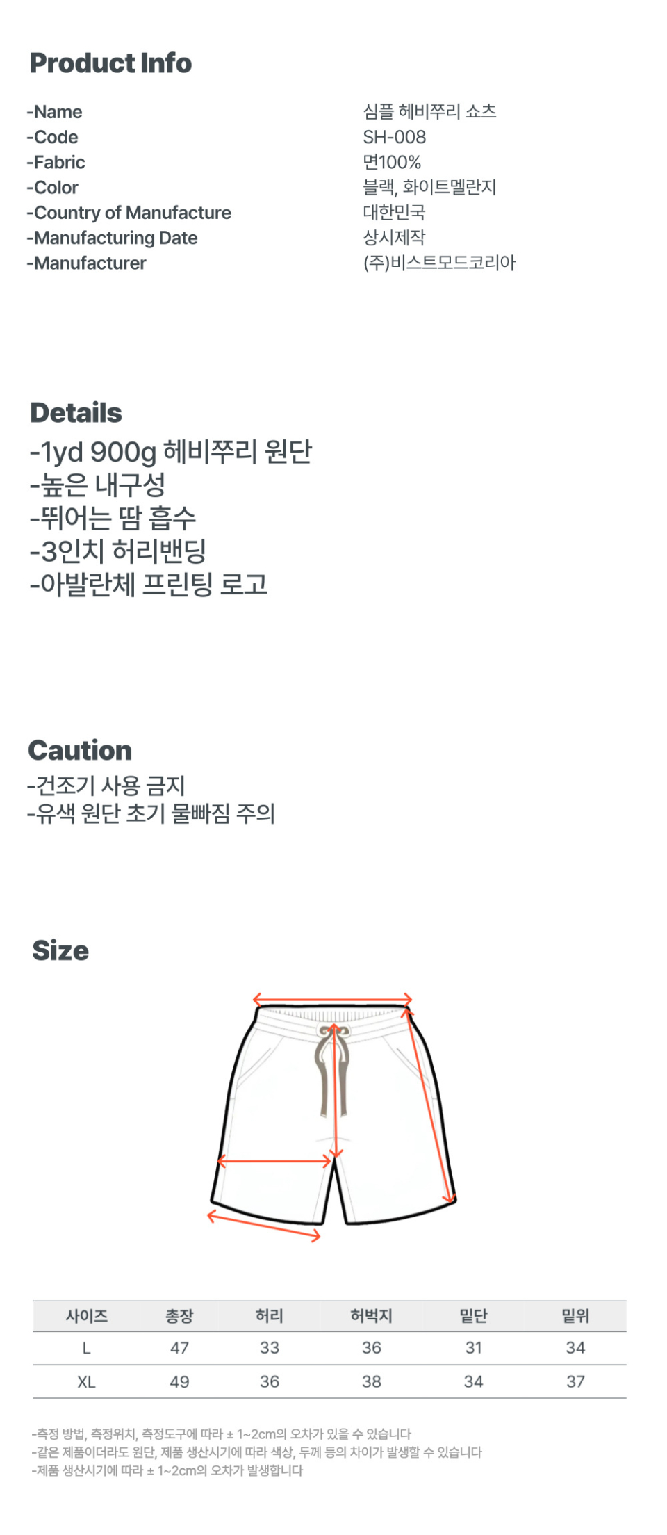 심플 헤비쭈리 헬스 반바지