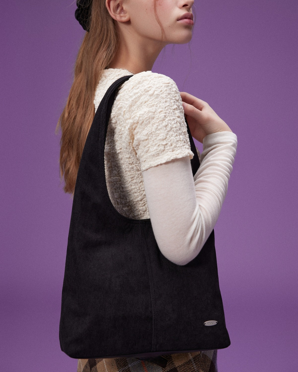 EYELET SHIRRING SHOULDER BAG IN BLACK