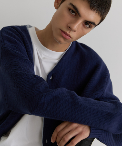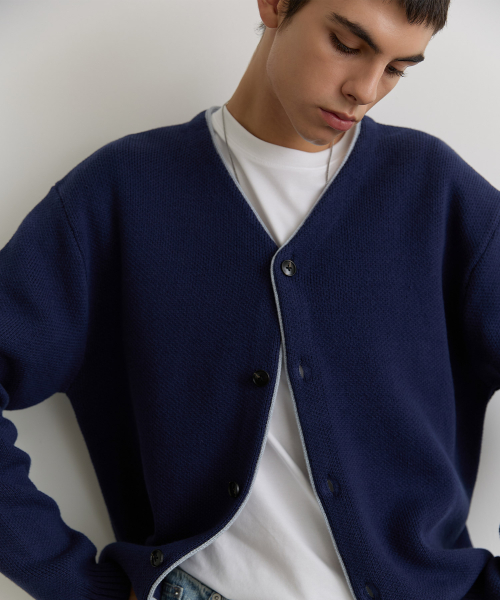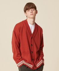 THREE LINES POINT HEM KNIT CARDIGAN_RED BRICK