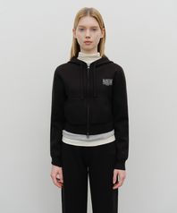 W CLASSIC LOGO CROP KNIT HOODIE ZIPUP black