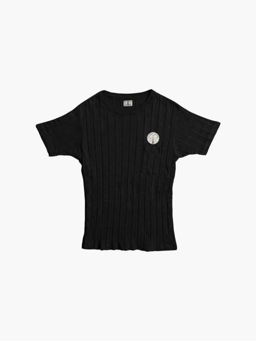 파인 리브드 머슬 반팔 니트티 [블랙]