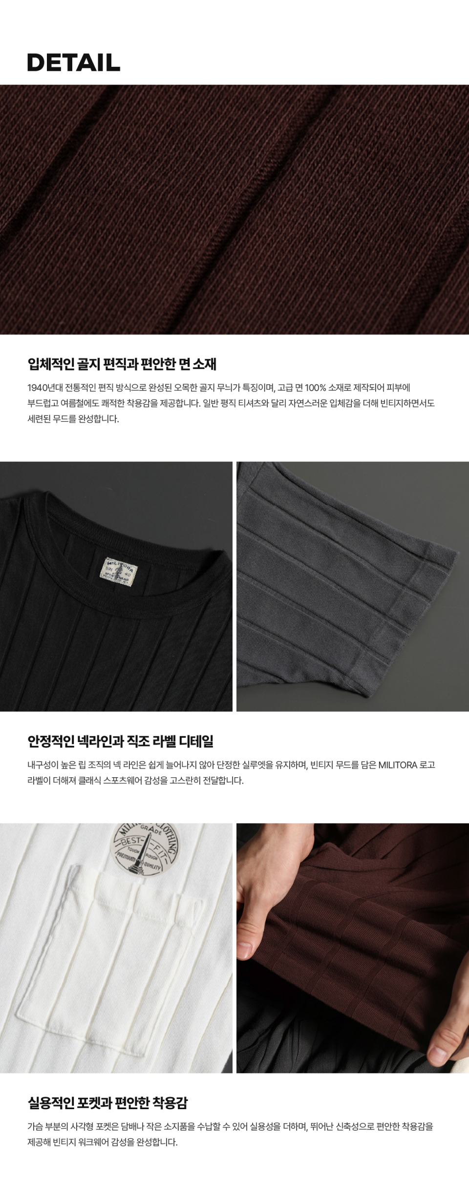 밀리토라(MILITORA)는 절제된 디테일로 강인한 매력을 표현하는 브랜드입니다. 1930년대 데님과 워크 트라우저 등 워크 웨어 기반의 의류를 현대적으로 복각합니다.
