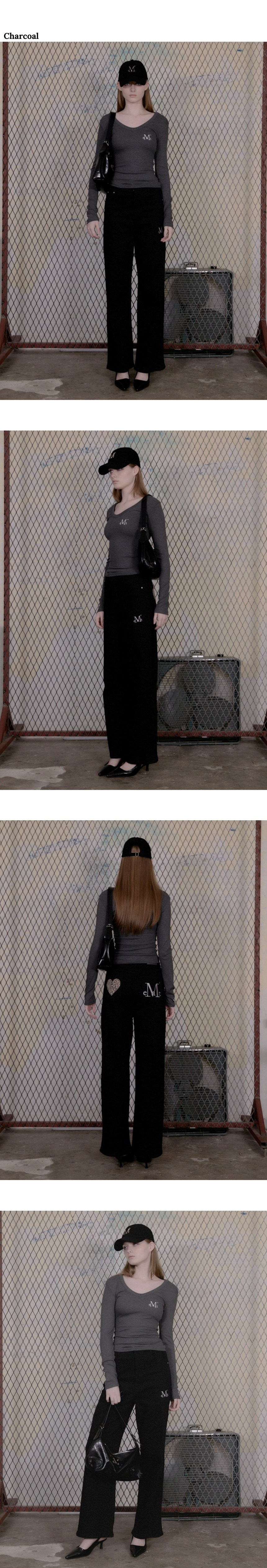 엔젤 아플리케 커브드 스웨트 팬츠[그레이]