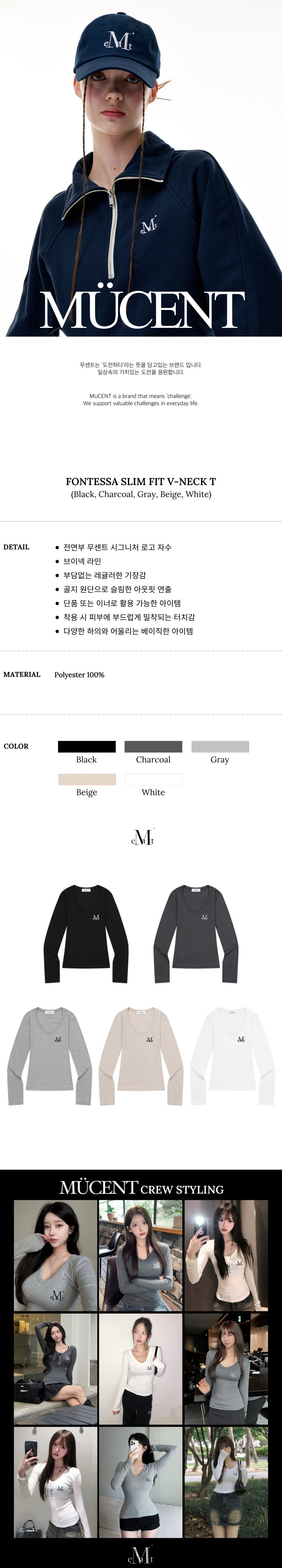 폰테사 슬림핏 브이넥 골지 티 (5컬러)