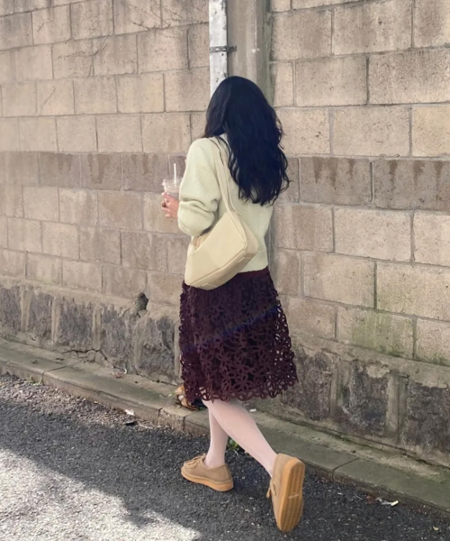 슬림핏 베이직 윈터 티어드 밴딩 롱 캉캉스커트 [화이트]
