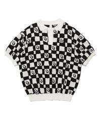 CHECKERBOARD SMILEY COLLAR HALF KNIT_BLACK(IK2DMMK641A)