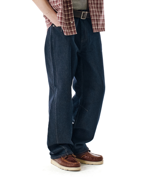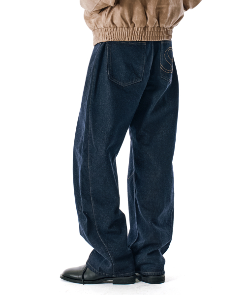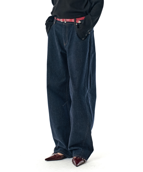 [옷미새 미홀 콜라보]Curved Tapered Barrel-Fit Denim Pants [INDIGO]_SEPT072CPINDIGO