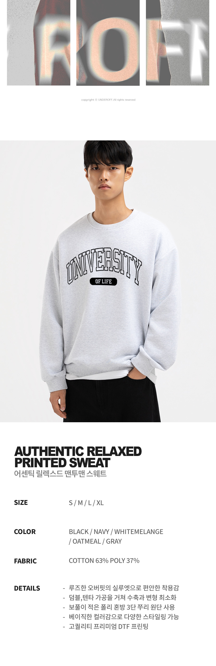 어센틱 릴렉스드 유니버시티라인 맨투맨 스웨트 화이트멜란지