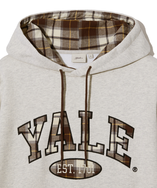 체크 투톤아치 후드_오트밀