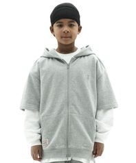 자이언트핏 하프소매 후드집업 (멜란지그레이)