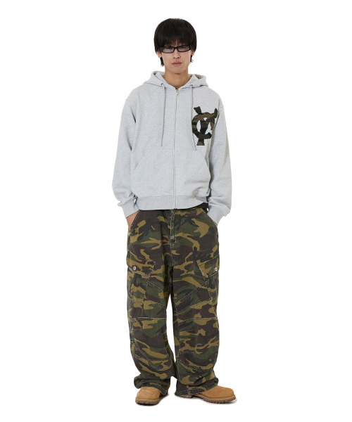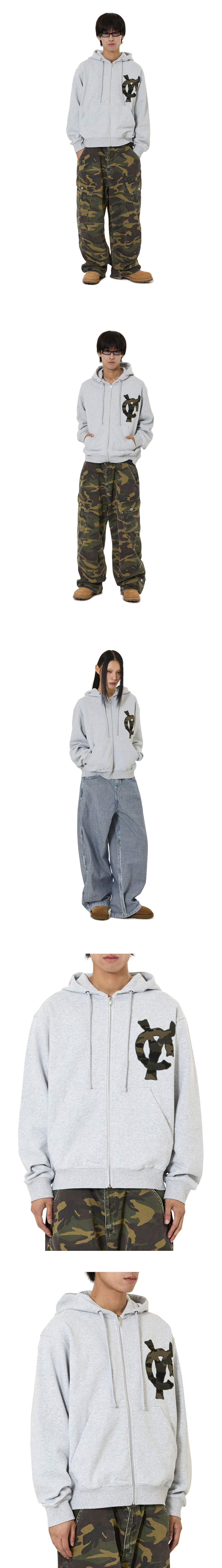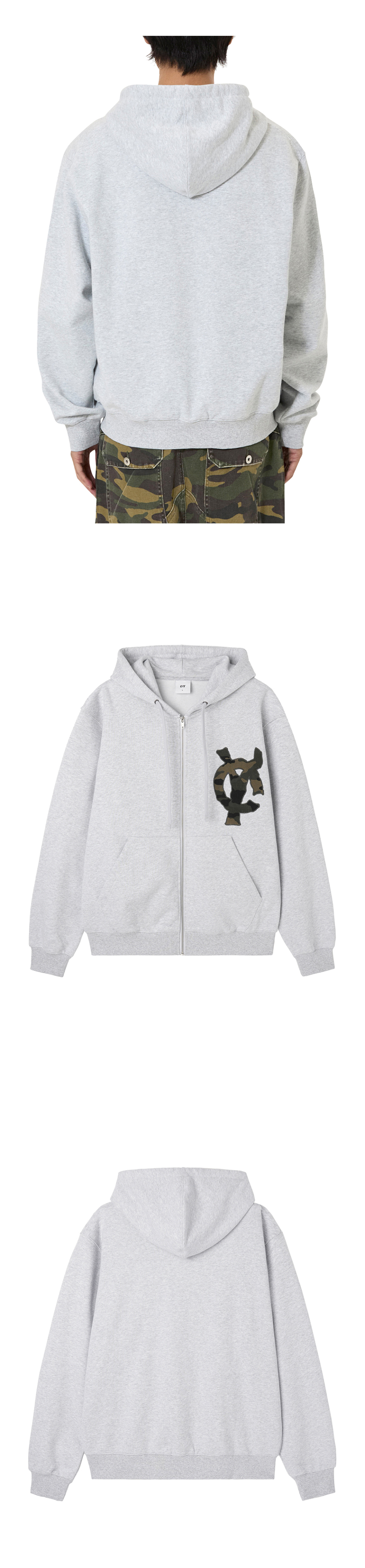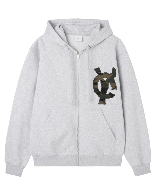 LOGO PATCH HOODIE ZIP UP - MID MELANGE
