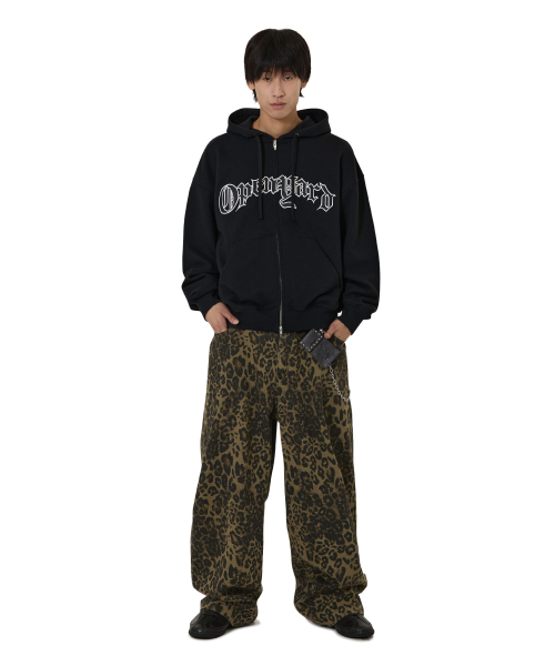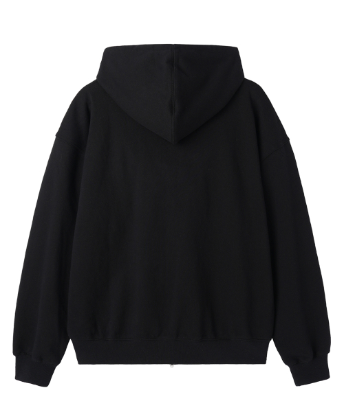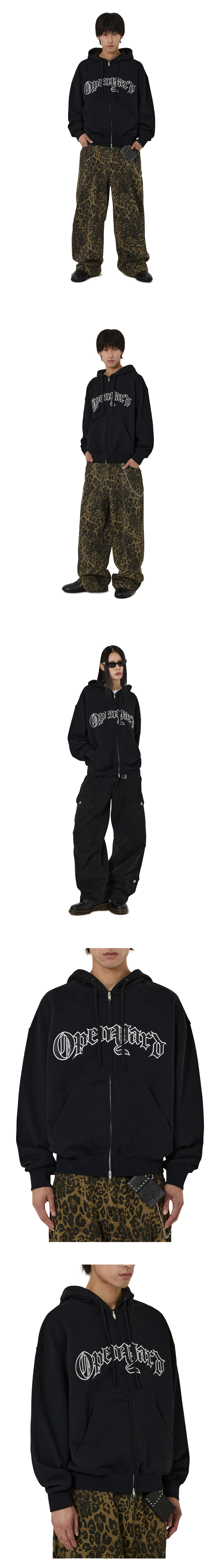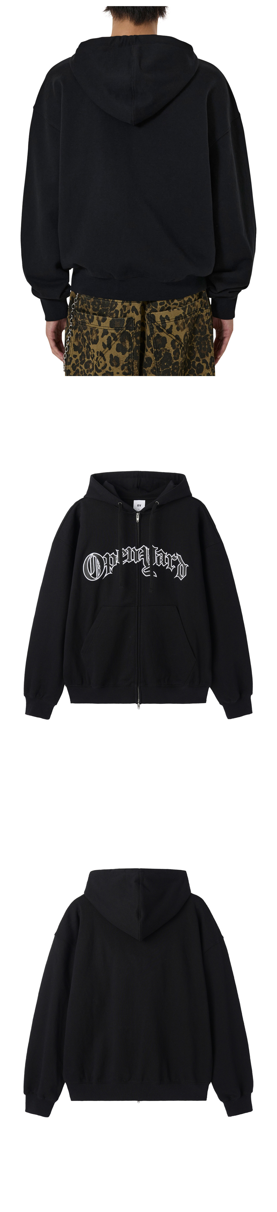 OLD LEATHER PATCH HOODIE ZIP UP - BLACK