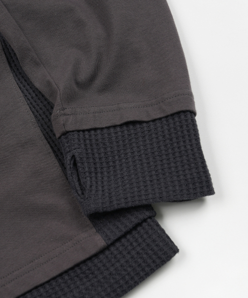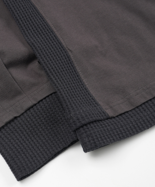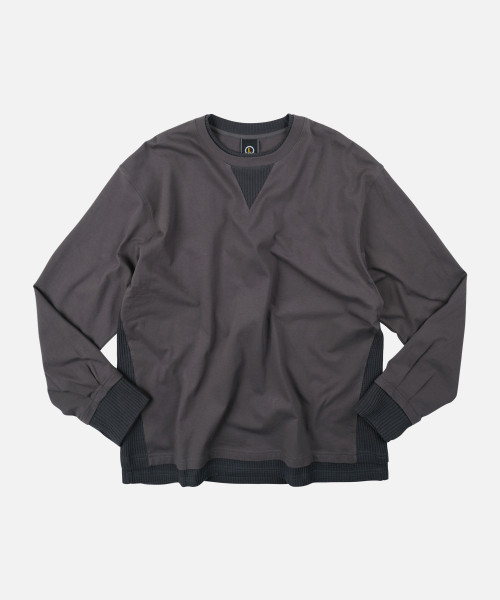 와플 헨리 넥 긴소매 티셔츠 [블랙]