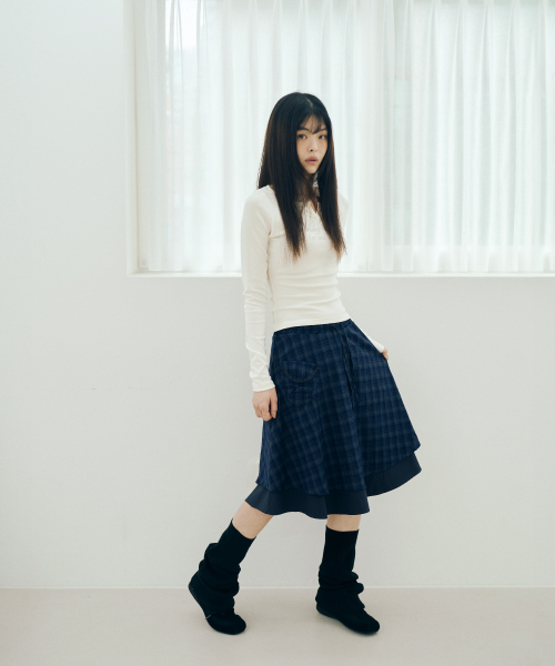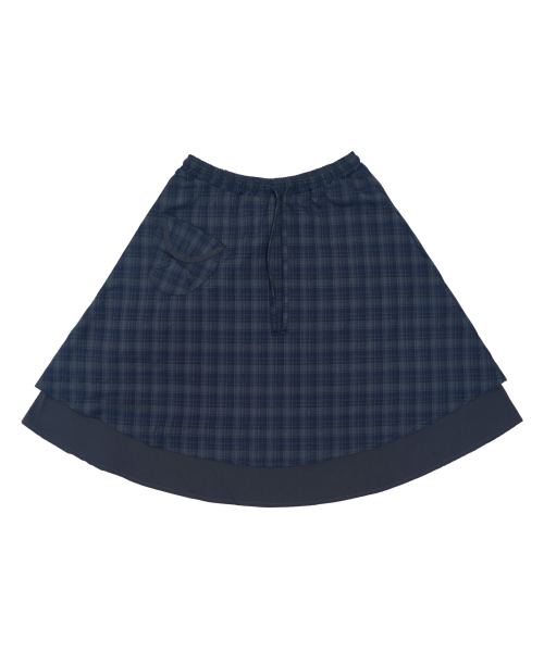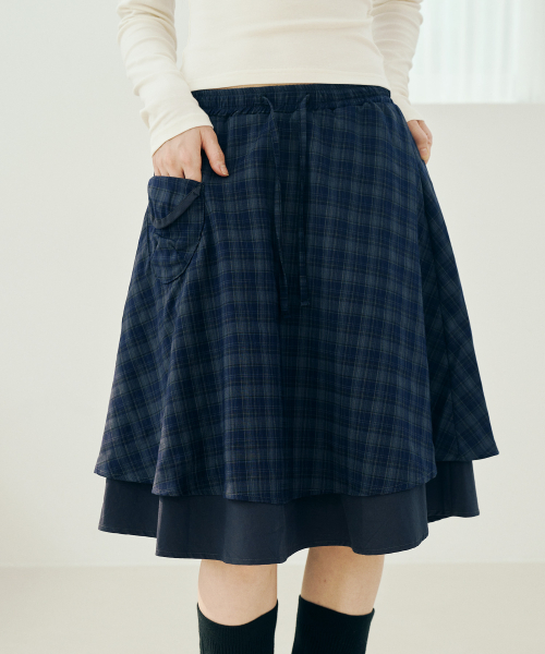 체크 포켓 미디 스커트 네이비