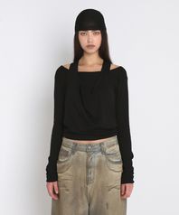 DRAPED HALTER LAYERED LONG SLEEVE T-SHIRT_BLACK