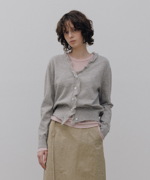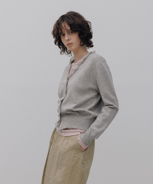더블 레이어드 크루넥 가디건 [GREY] / GF1LKC509