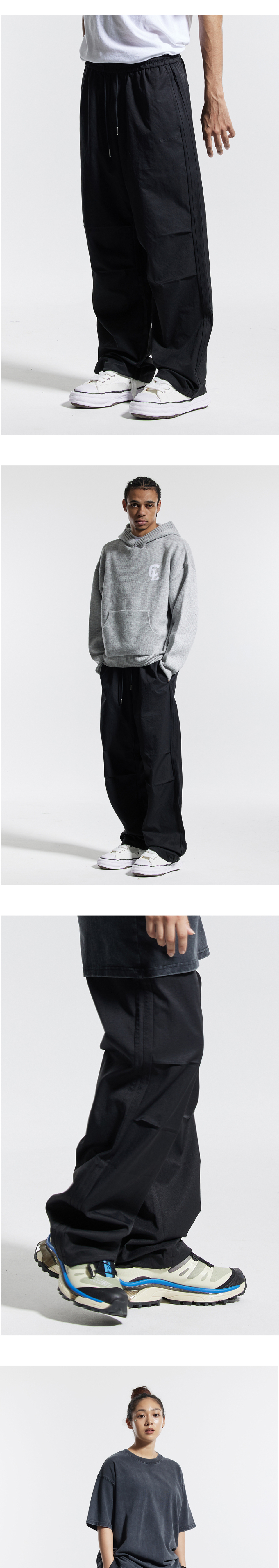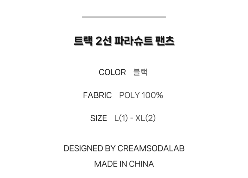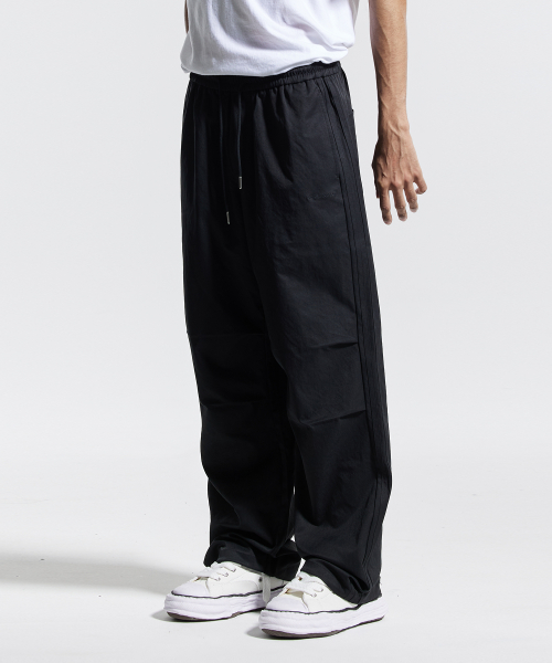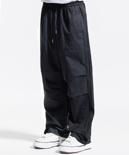 트랙 2선 파라슈트 팬츠 블랙