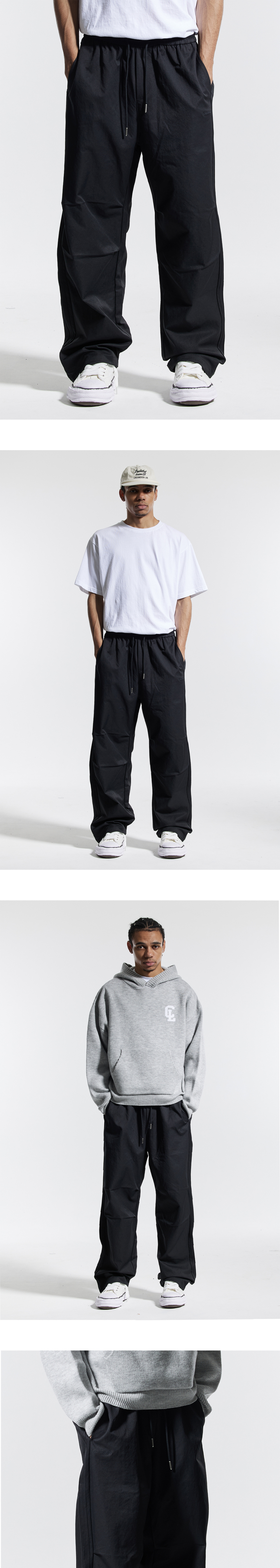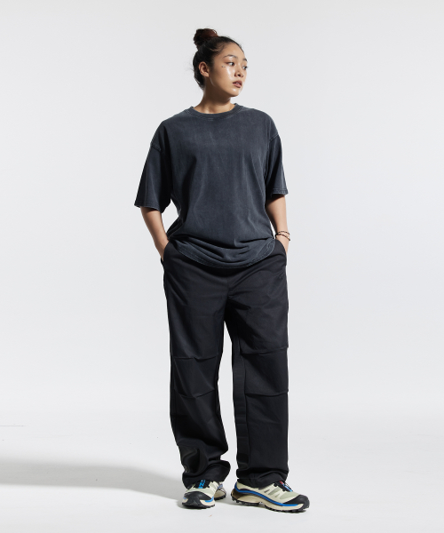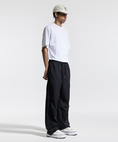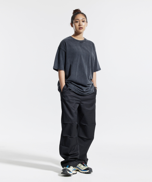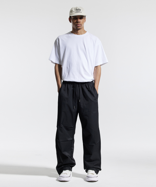 피그먼트 와이드 스트링 팬츠 블랙