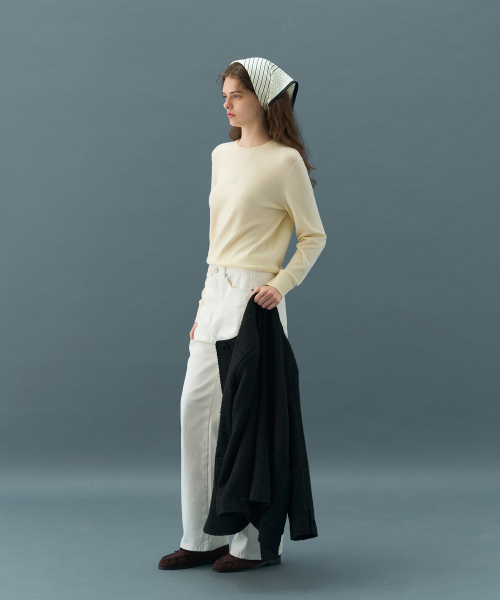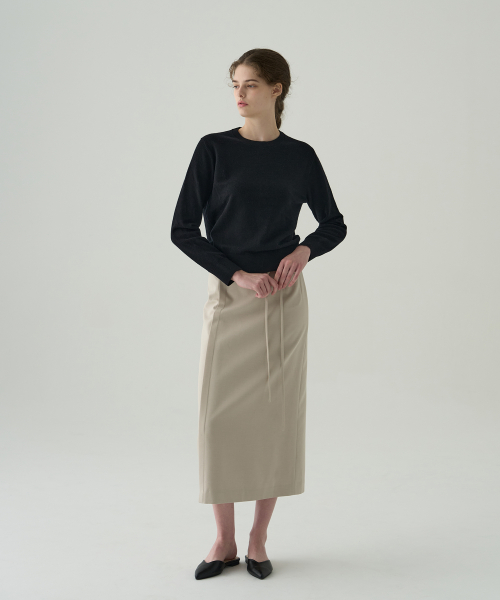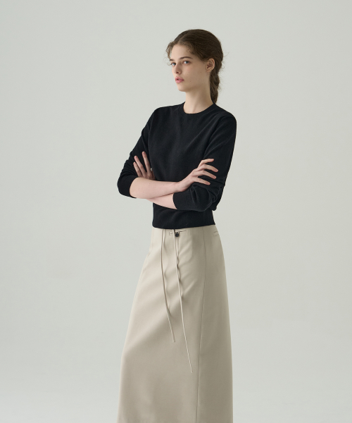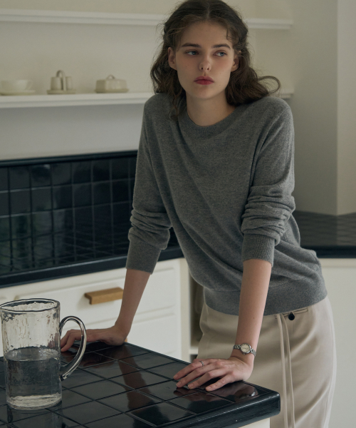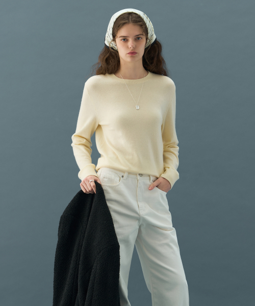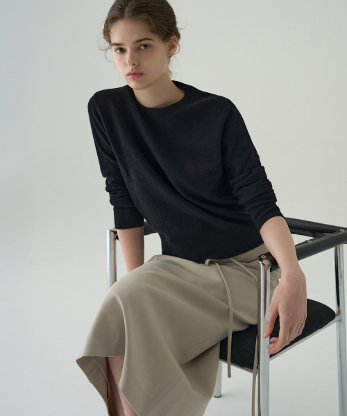 소프티 캐시 울 블렌디드 라운드넥 니트 [BLACK]